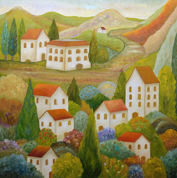 Wow! Such a charming artwork, dear Angeles! Love this fascinating view you've painted! Attractive trees, plants and flowers surrounding the sweet houses! Marvelous piece!💕 L/F