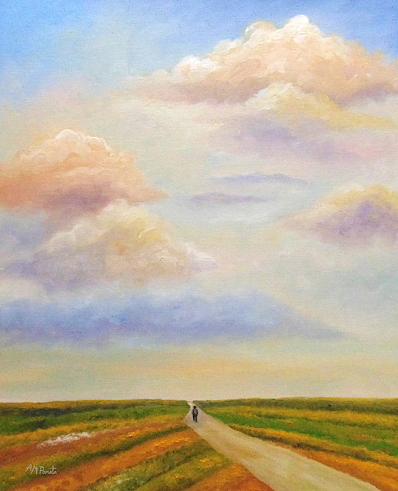 What a magnificent sky! Beautiful painting of the solitary traveler headed for the horizon.