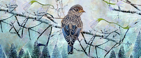 This painting is based on the original photograph 'Fascinating Feather Pattern Of A Juvenile Eastern Bluebird', by Cindy Treger, whose express... more